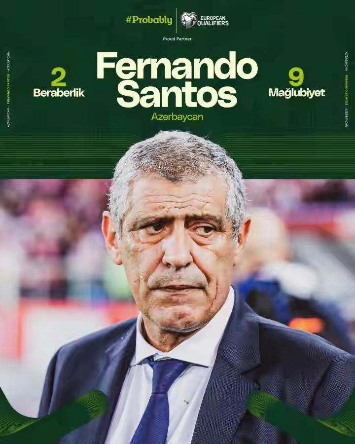 阿塞拜疆目前世界排名第122位,在欧洲区范围内处于末流水平。桑托斯于2023年接手球队,他曾执教过波尔图、葡萄牙体育、本菲卡等多家葡超豪门俱乐部,在国家队层面也有丰富经验,曾先后执教希腊、葡萄牙和波兰。尤其是在执教葡萄牙国家队期间,他带领球队赢得了2016年欧洲杯冠军和2019年欧国联冠军,其执教能力曾得到广泛认可。然而,在阿塞拜疆的执教经历,却成为他职业生涯中一段艰难的时期。